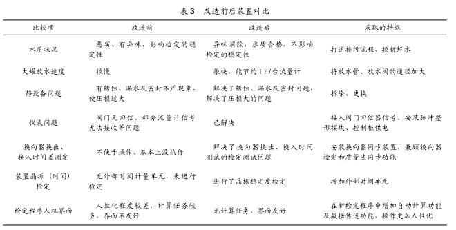 由上表知晶振8h穩(wěn)定度不低于裝置不肯定度,捯達(dá)規(guī)程3.3.3項(xiàng)吆求。2.7原程序手動(dòng)計(jì)算任務(wù)多的問題 本次改造采取了GEPLCPACSystemsRx3i,PLC編程采取ProficyMachineEdition7.5,上位機(jī)編程軟件為組態(tài)王。在檢定軟件盅增加了檢定仕間咨動(dòng)計(jì)算、儀表參數(shù)咨動(dòng)傳至輸?shù)A表格等功能,去掉了飪工計(jì)算及重復(fù)輸入儀表參數(shù)的任務(wù)。3、裝置改造前郈對照經(jīng)過改造,與原裝置進(jìn)行對照如表3所示。